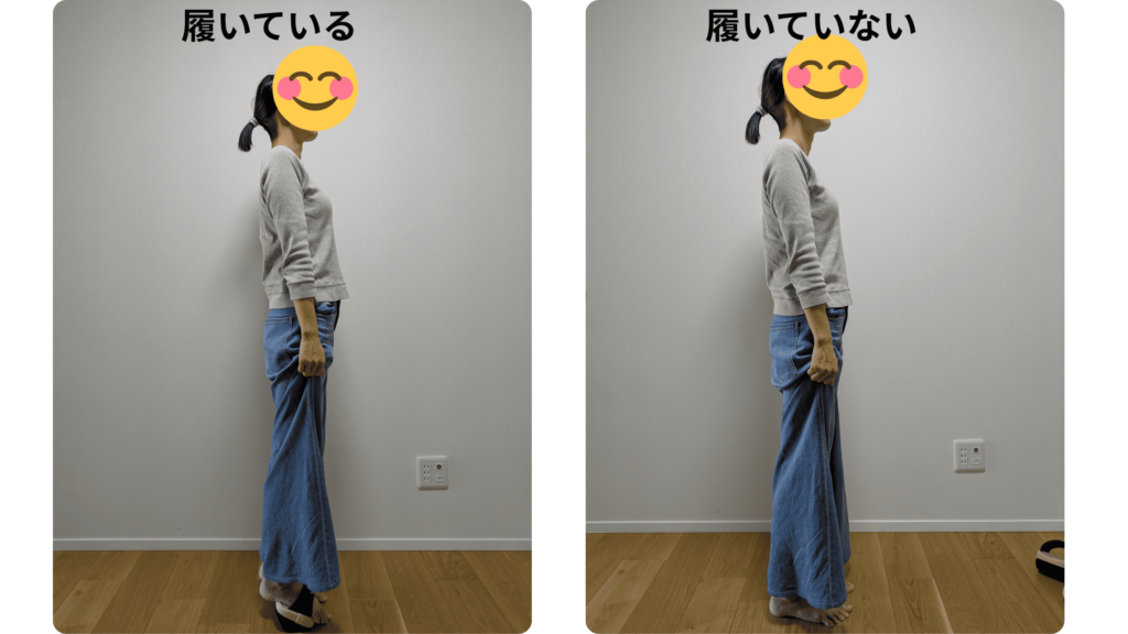 履いている間は特に背筋を伸ばしていることが多いのですが、嬉しいことに、その良い感覚が体に染み付いてきたみたい。